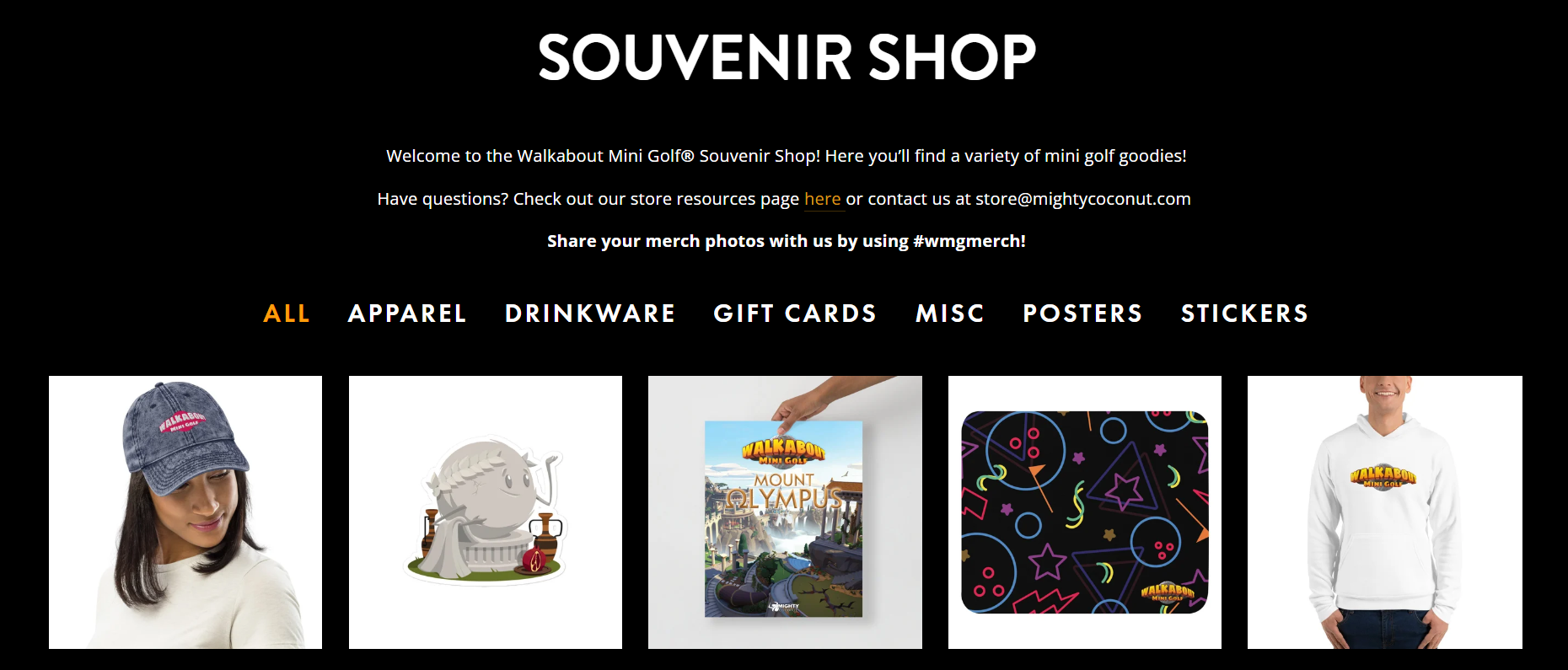 Visit the Walkabout Mini Golf® Souvenir Shop for a variety of mini golf goodies!